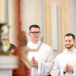 Am 10. Mai weihte Weihbischof Franz Scharl in der Pfarrkirche St. Leopold Donaufeld sieben Männer zu Diakonen für die Erzdiözese Wien. Die Kandidaten kommen aus verschiedenen Gemeinschaften: drei aus dem Wiener Priesterseminar, einer aus dem Benediktinerpriorat St. Josef in Maria Roggendorf und drei aus dem diözesanen Missionskolleg „Redemptoris Mater". Manuel Rennhofer, Joachim Loshehand und Julius Moses Münzer kommen aus dem Wiener Priesterseminar, P. Leo Maria Zehetgruber gehört dem Benediktinerpriorat St. Josef in Maria Roggendorf an drei weitere Kandidaten stammen aus dem diözesanen Missionskolleg „Redemptoris Mater“. Diese Vielfalt unterstreicht die Breite der geistlichen Berufungen in der Erzdiözese. Wir waren mit der Kamera dabei.
