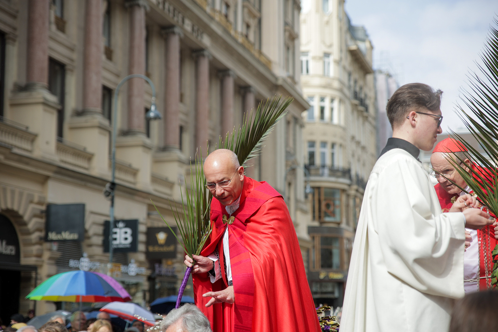 Traditionell werden am Palmsonntag, eine Woche vor Ostern, in der Wiener Innenstadt die Palmkätzchen von Kardinal Christoph Schönborn gesegnet. Die Palme ist ein Symbol des Sieges und steht im Christentum für das ewige Leben. Wir waren mit der Kamera dabei.
