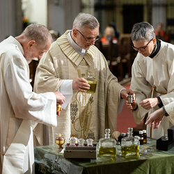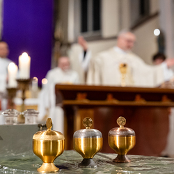 Am Mittwoch feierten die katholischen Gemeinden und Gemeinschaften des 18. Bezirks im Rahmen einer speziellen Messfeier, die von Radio Maria übertragen wurde, in der Pfarrkirche Weinhaus die Verteilung die vom Herrn Erzbischof geweihten Heiligen Öle. Dechant P. Arkadiusz Zakręta CM stand der Feier vor. Wir waren mit der Kamera dabei.